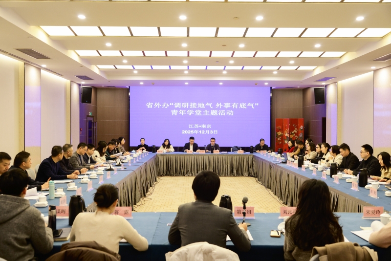 为深入学习贯彻党的二十届四中全会精神,着力提升青年外事干部调查研究能力,12月3日,省外办在南京举办“调研接地气 外事有底气”青年学堂主题活动。沈雁飞副主任出席活动并讲话,省委办公厅综合处、省外办机关各处室及直属单位负责同志、青年学堂全体学员共40余人参加活动。